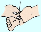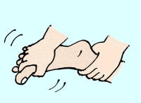 | 3)足の土踏まずを握り拳で思いきりたたきます。 悔しいとき、気持ちが落ち込んだ ときに自分の足の裏を『ガンバレ、ガンバレ』と思いきりたたいて下さい。結構さっぱりしますよ。 |