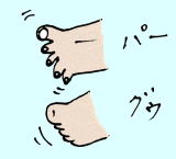 | 6)足を伸ばして足の指先を開いたり握ったりします。 足先の血のめぐりが良くなったかどうか、確かめてみましょう。 |